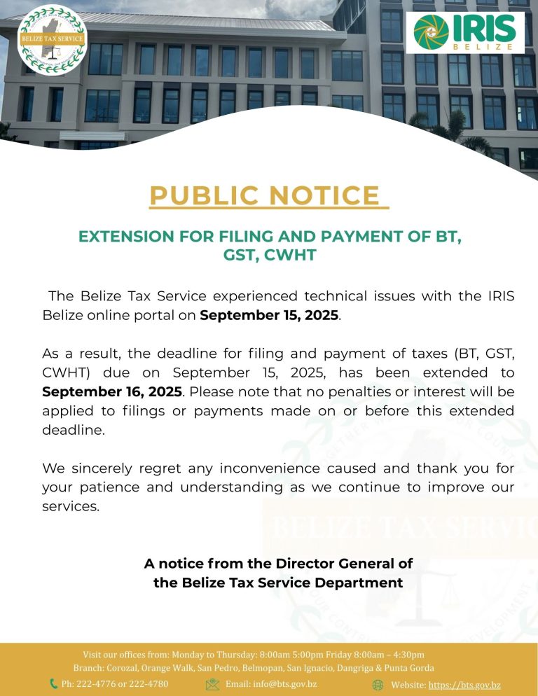 The Belize Tax Service experienced technical issues with the IRIS Belize online portal on September 15, 2025. As a result, […]